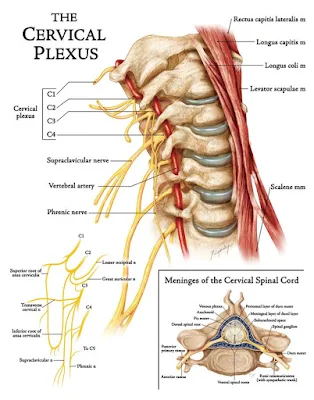 - Plexus cervicalis, merupakan gabungan urat saraf leher yang mempengaruhi bagian leher, bahu dan diafragma.